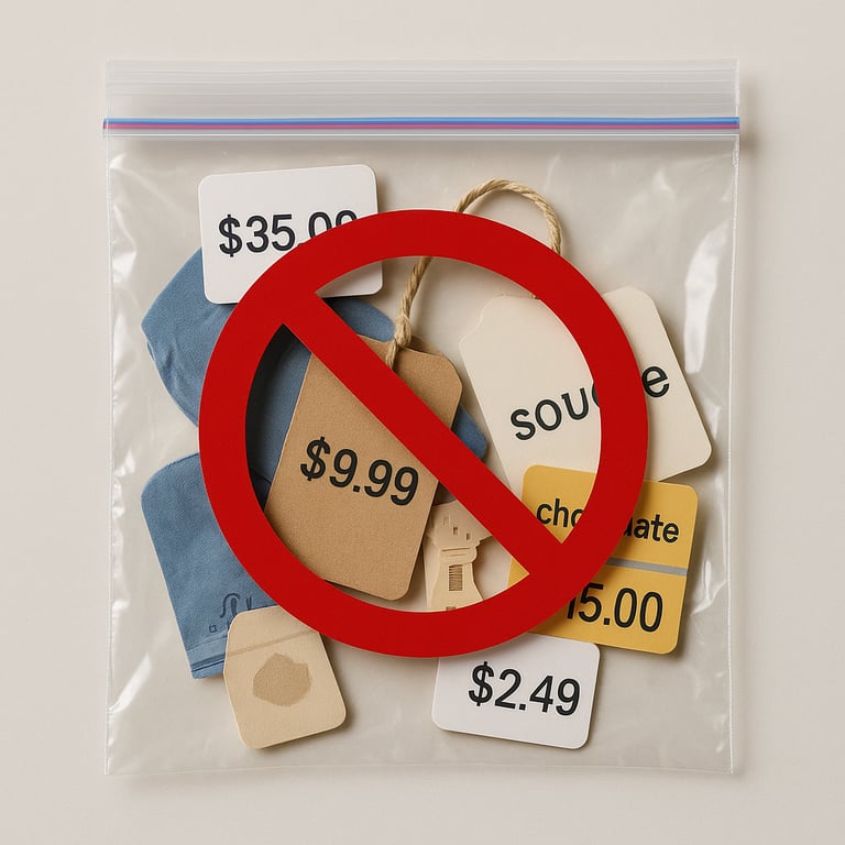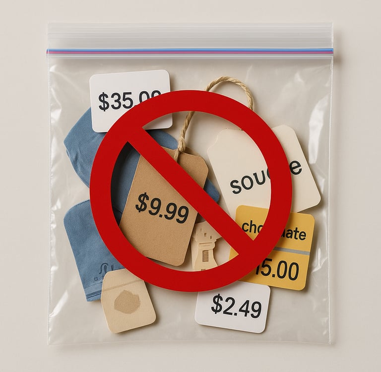 🚫💵 No Prices or Labels Inside Bags