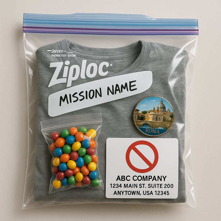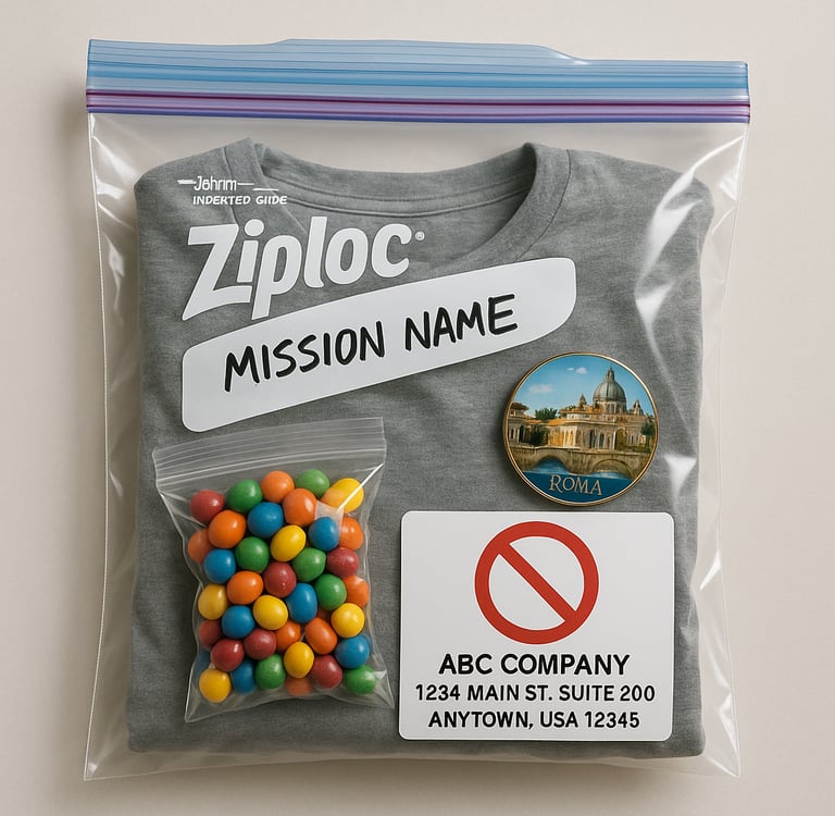 Write the mission name and missionary’s name clearly on the outside of the bag using a Sharpie.