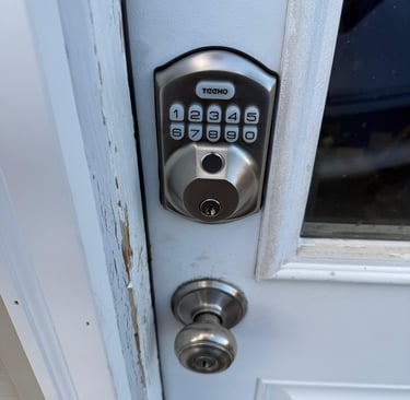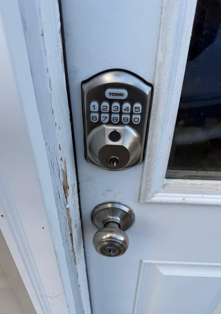 Locate the electronic lock on the garage door.